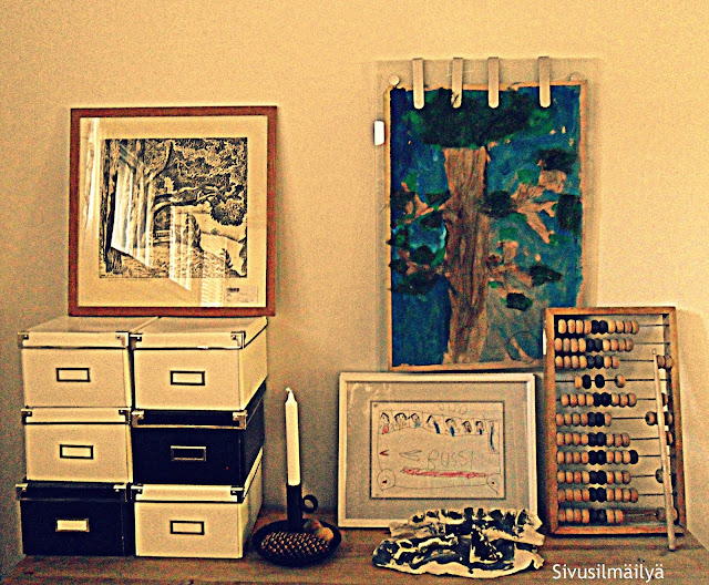 Heips! Tulin kurkkailemaan vinkistäsi teidän kodin taidetta:) Bongasin useammankin lapsen (eli varmastikin juuri poikasi) tekemän taulun, todella hienoja!!! Ja ei teidän kodissa muutenkaan ollenkaan pöllömmältä näytä, ihanan kodikasta ja lämpimän näköistä, kaunista:)!